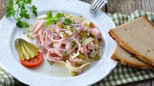 Jak na to: Ve velké míse smíchejte nejprve žloutky se smetanou, přidejte uvařené uzené maso i rohlíky nakrájené na kousky, spařené kopřivy, nadrobno nakrájenou cibuli i prolisovaný česnek. Vše dochuťte majoránkou, nasekanou pažitkou, solí a pepřem. Na závěr přidejte olej a sníh.